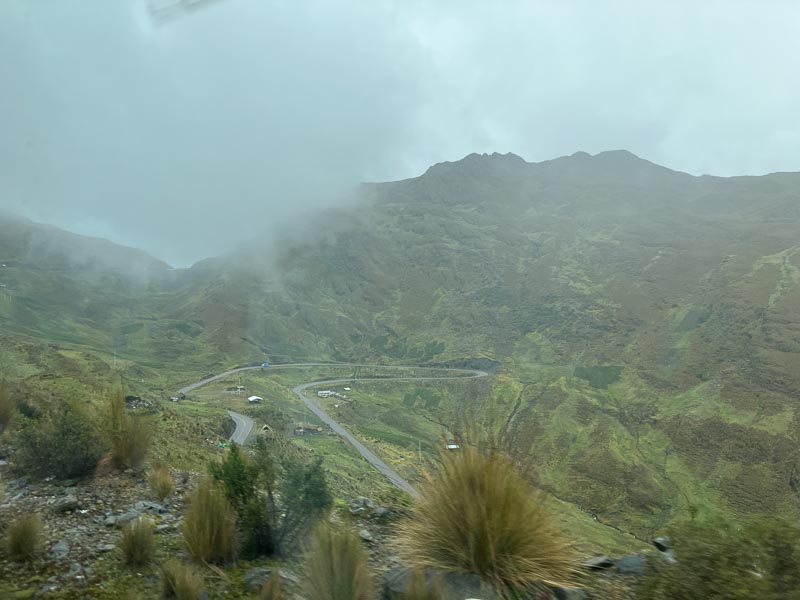 市内を出るとすぐに山道が始まります。途中の休憩所からはPeru Railの列車を眺められ、「あれが観光列車か」とちょっと羨ましく思ったり。