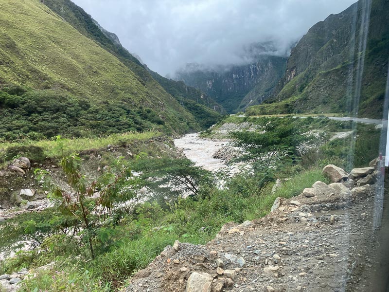 さらに奥へ進むと、未舗装の崖っぷちを走る道に差しかかります。窓の外には深い谷と流れる川。「よくこんな道を通るな…」と少しひやひやしつつも、マチュピチュがいかに山奥にあるかを実感しました。