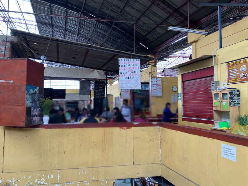 食費を抑えたい旅行者にとって市場の食堂はありがたい存在です。ワラスの中央市場の2階には、ローカル食堂がずらりと並んでいました。私はそこで8ソルの定食を食べましたが、スープ、メインが付いてボリュームも満点。