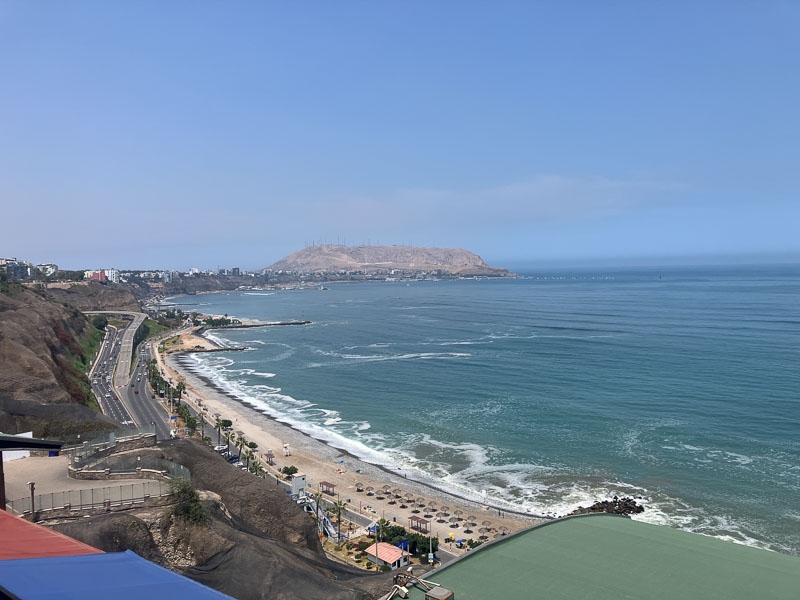宿にチェックインした後海沿いまで歩くと、断崖の下に広がる深い青の太平洋。これまでマチュピチュやクスコの山岳風景ばかり見てきた私にとって、ペルーで「海を感じる」というのはとても新鮮でした。