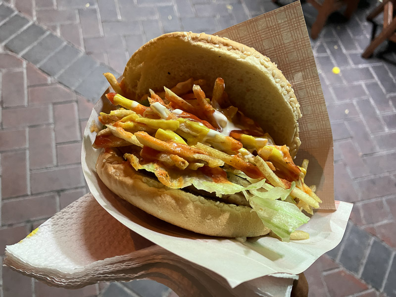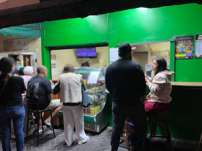 ミラフローレスは観光客向けのお店ばかり並び、手頃な値段でご飯を食べるのが難しいのが難点。そんな中で6月7日公園近くにあるストリートフードのお店はハンバーガーやローカルフードを手頃に食べられます。お店は小さいですが、地元客には人気なようです。