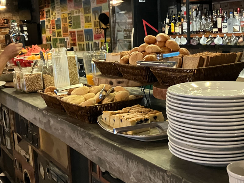 朝食はパンや果物、シリアルなどのビュッフェ形式で、お腹いっぱい食べることができます。